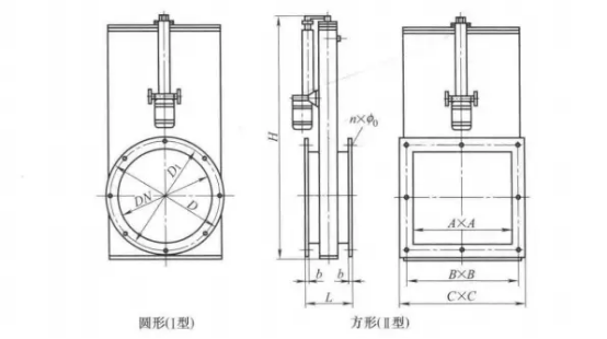 3.插板閥與現(xiàn)場管道連接方式可以為法蘭螺栓連接、插入反法蘭或管道直接對焊連接。